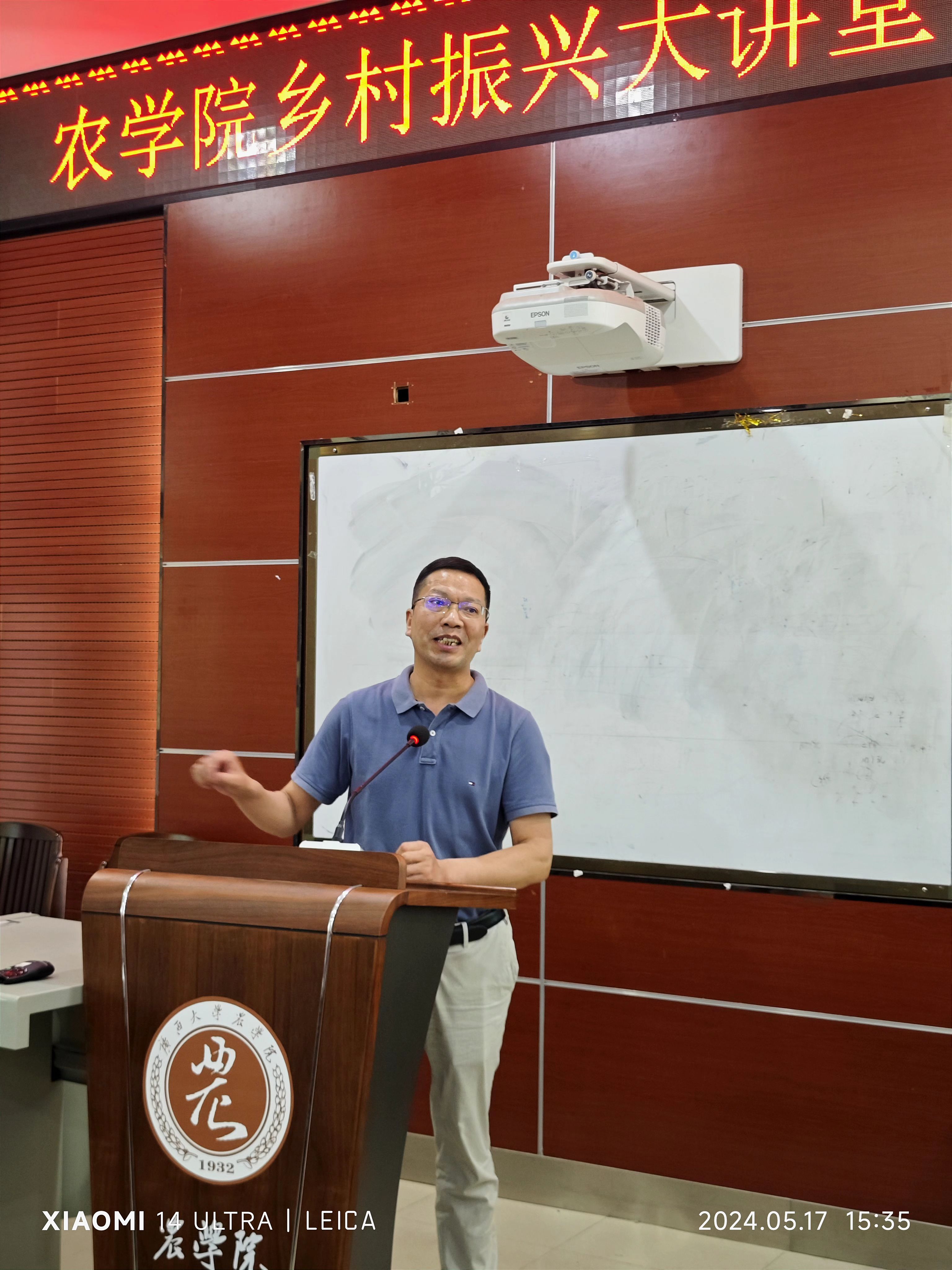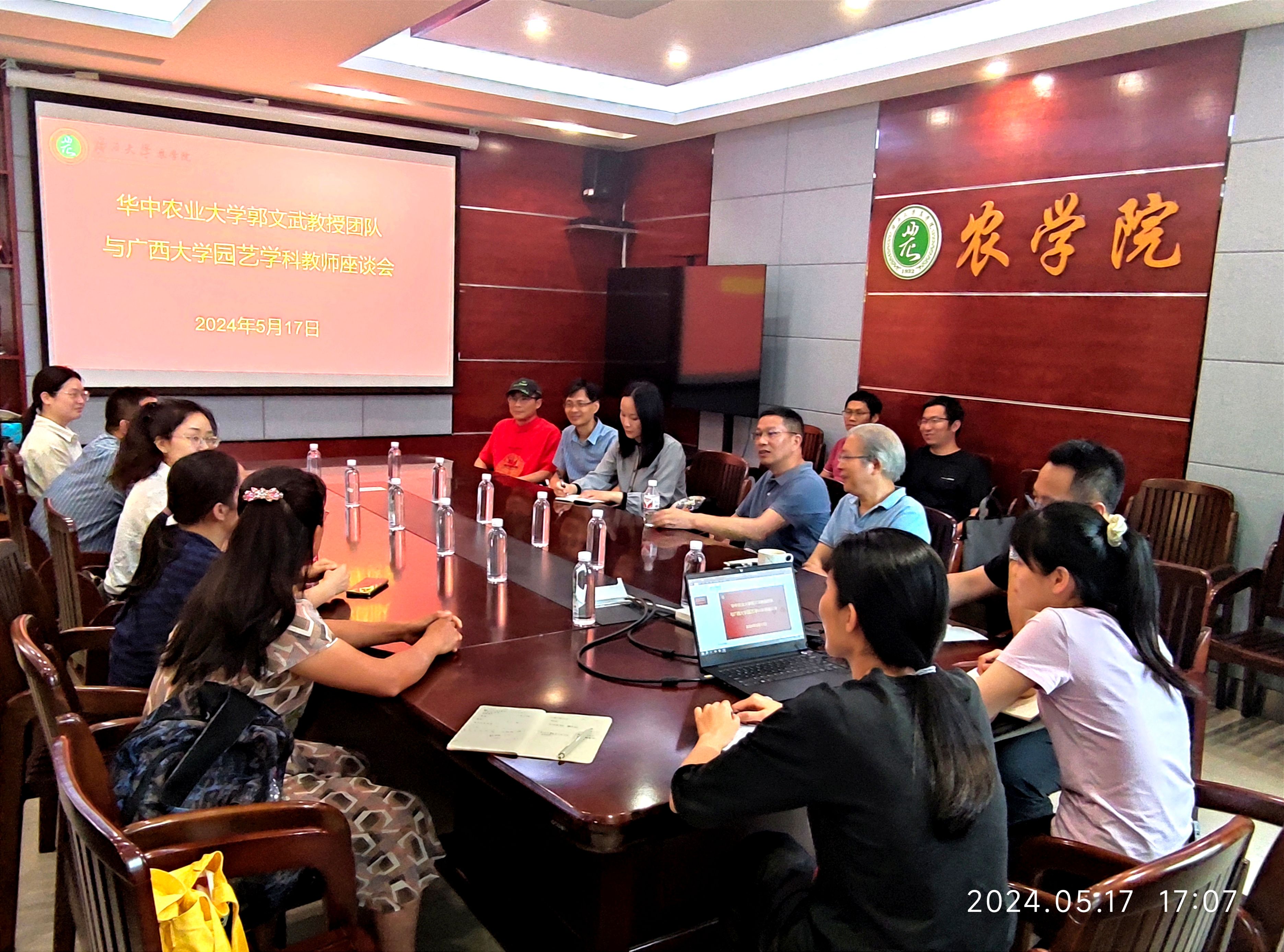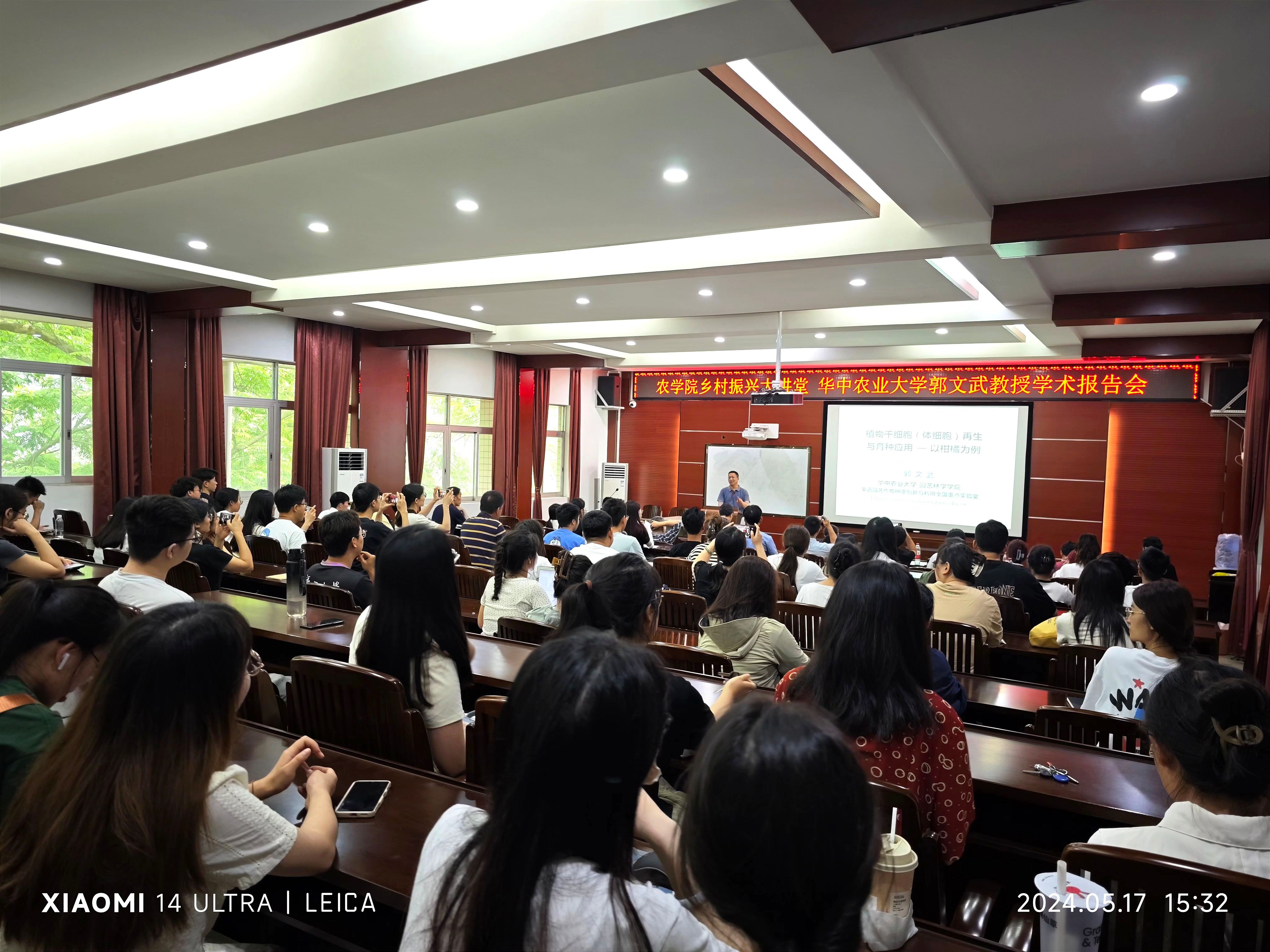 5月17日,国家杰出青年科学基金获得者、教育部长江学者特聘教授、华中农业大学郭文武教授应邀到校交流学术,为师生们作了一场“植物干细胞(体细胞)再生与育种应用—以柑橘为例”的专题报告,报告会由李建雄院长主持。