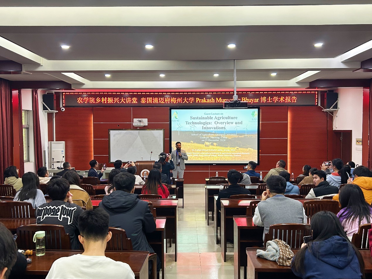 2024年12月21日,泰国梅州大学Prakash Murgeppa Bhuyar博士应邀到太阳成集团tyc151cc进行学术交流,为师生们作了一场题为“可持续农业技术:概述与创新”的学术报告,报告会由韦燕燕副院长主持。