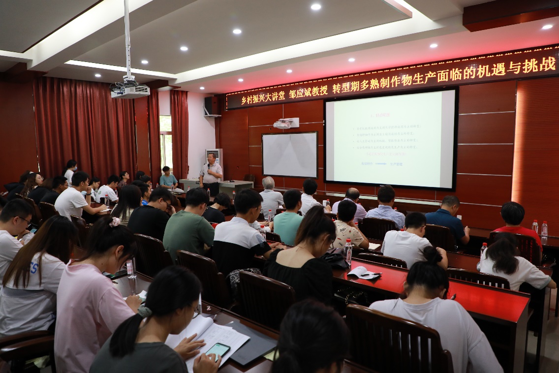 报告会上,刘耀光院士以“粮食安全与生物技术育种”为主题,介绍了我国的粮食安全存在的隐患及农作物育种技术的发展方向;邹应斌教授以“转型期多熟制作物生产面临的机遇与挑战”为主题,讲述了在新形势下作物发展的新机遇及多熟制作物与规模化生产面临的挑战,介绍了适应多熟制作物发展的新技术;于秋海教授以“东北花生高效生产的限制因素及其技术调控”为题,给大家讲解影响东北花生高产优质高效的关键因素及提高花生品质与产量的新技术;陈庆山教授以“大豆全基因组导入系构建与应用”为主线,简明扼要讲述了大豆全基因组导入系在基因定位及其在育种中的应用;赵志全教授以“作物栽培学科的科研发展思考-以河南农业大学水稻团队为例”为题,总结了水稻研究领域领军人才培养的三个关键词“出国”“名师”“大台”和作物栽培科技创新的三大关键词“核心技术”、“社会影响”、“适应发展”,为年轻科研工作者创新发展提供了经验借鉴。