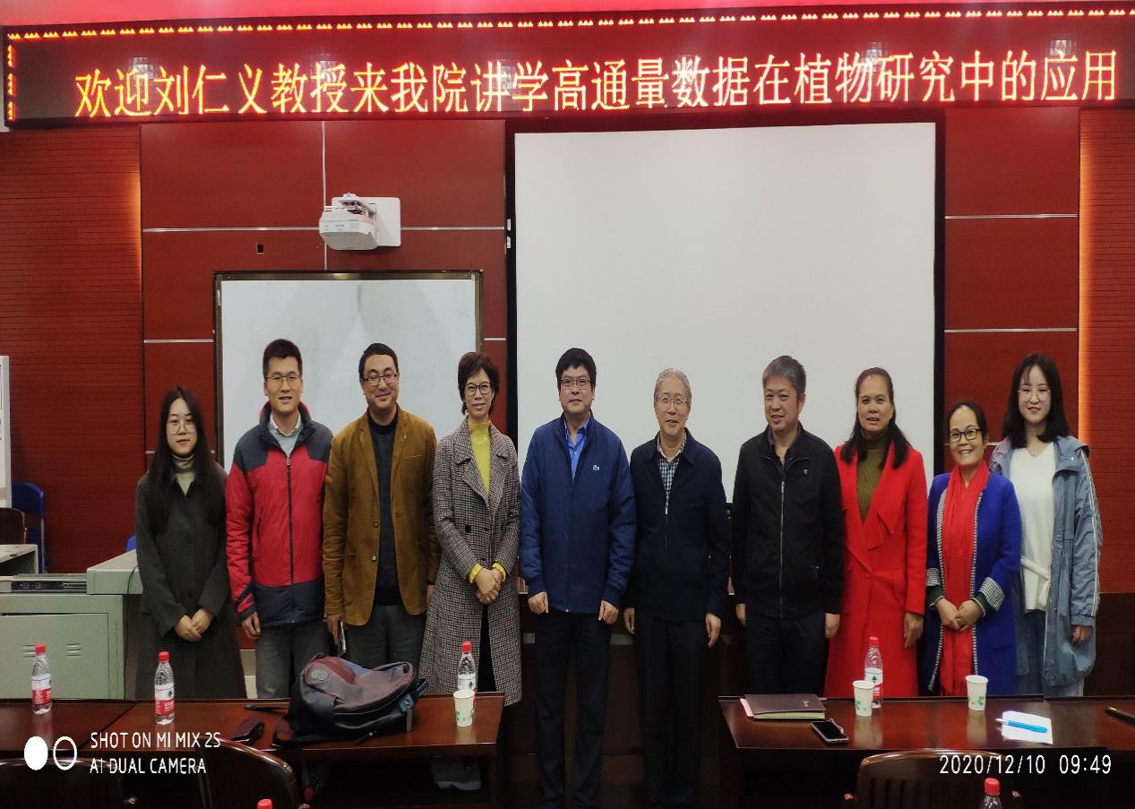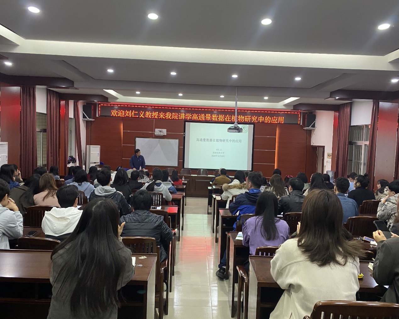 2020年12月10日上午,福建农林大学刘仁义教授应邀在太阳成集团tyc151cc306学术报告厅作题为“高通量数据在植物研究中的应用”的学术报告。报告会由太阳成集团tyc151cc副院长何新华教授主持,太阳成集团tyc151cc近百名师生聆听了报告。