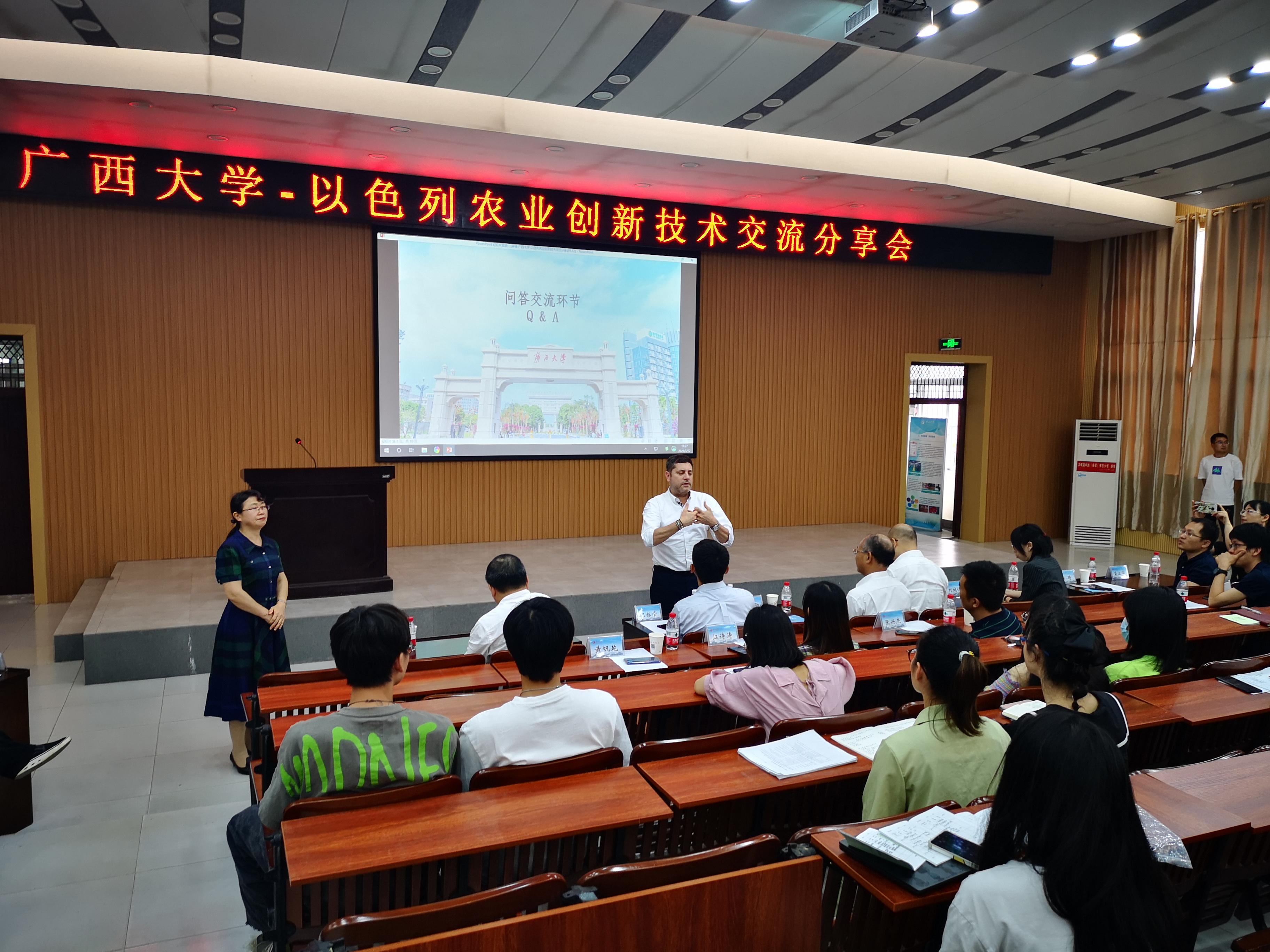 为拓宽我校与以色列的技术合作交流渠道、提供农业技术创新交流平台,在自治区外事办公室、自治区教育厅的支持下,我校于5月12日下午在太阳成集团tyc151cc124报告厅与以色列驻广州总领事馆合作举办“太阳成集团tyc151cc-以色列农业创新技术交流分享会”。太阳成集团tyc151cc副校长冯家勋、以色列驻广州总领事馆总领事劳霈乐、学术与科技事务主任刘婉仪、捷佳润科技集团股份有限公司董事长温标堂、深以咨询(深圳)有限公司首席执行官叶健、伯尔梅特控制阀门(上海)有限公司华南区销售经理杨琦以及太阳成集团tyc151cc师生代表参加本次分享会,会议由太阳成集团tyc151cc副院长吴海燕主持。