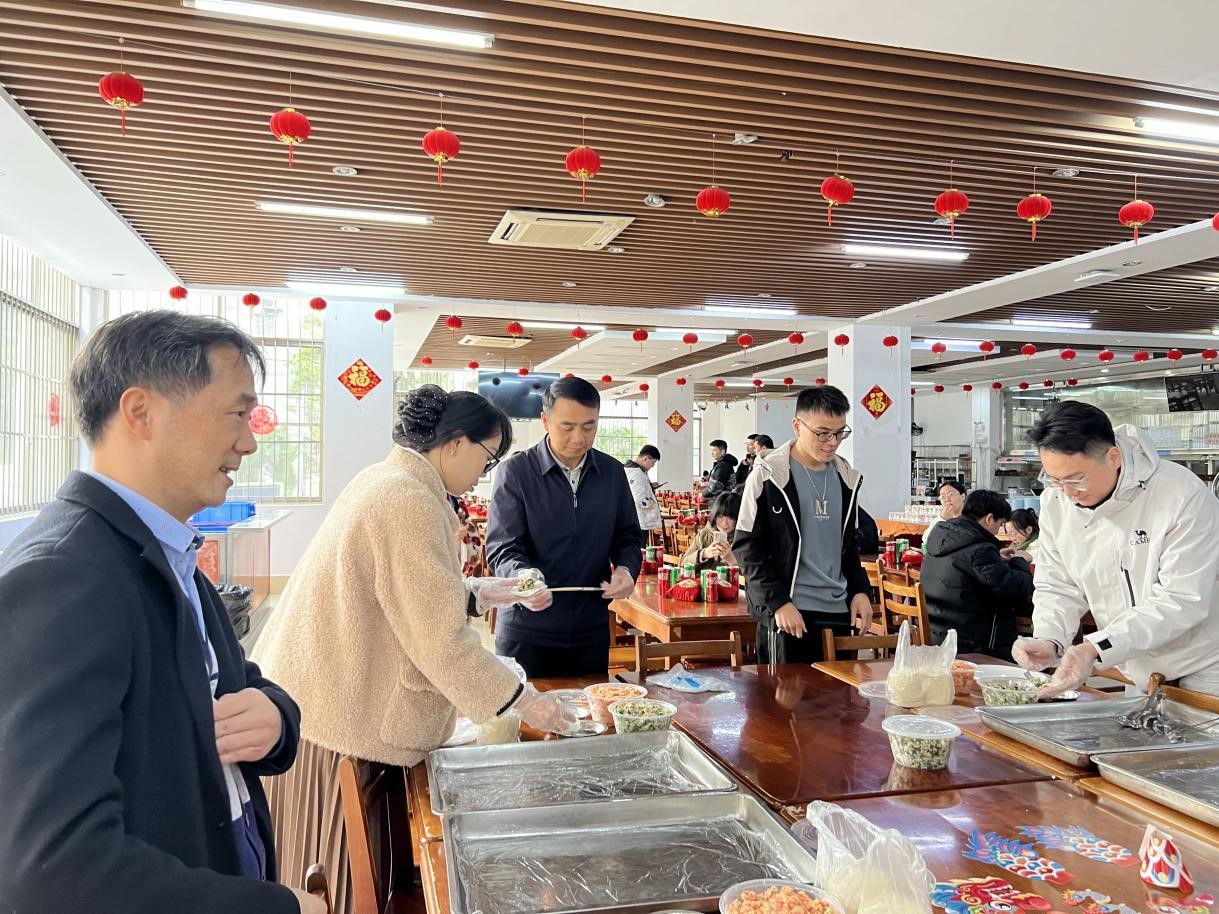 太阳成集团tyc151cc党委副书记甘敏思老师、团委书记李诺老师代表学院向太阳成集团tyc151cc留校过年的同学们致以新春问候与祝福,并与同学们一起包饺子、写“福”字,共贺龙年新春佳节。
