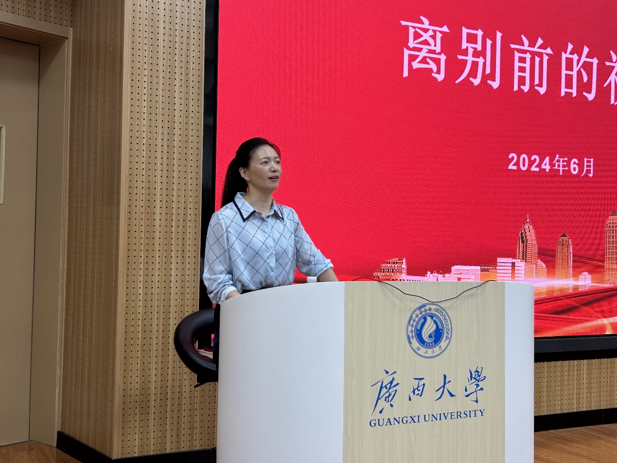 最后,党委副书记欧阳雄姣送出离别前的祝福,希望毕业生们在今后的工作中能够攻坚克难,勇毅前行,作为农科学子,不要忘记学农的初心和使命,争做有理想,有担当,肯奋斗的新时代青年,要常怀感恩之心,常回学校看看。
