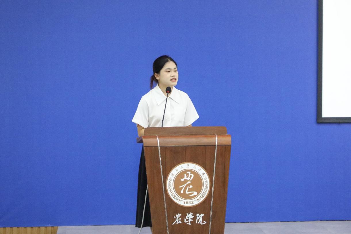 高欲垚充分肯定过去一年学生骨干在思想引领、组织建设、实践服务等方面取得的成果。她结合自身经历,向学生骨干提出四点希望,一要坚定理想信念,加强理论学习,并付诸于行动;二要明确自身职责,紧密联系同学,全心全意为同学们服务;三要夯实专业知识,合理规划时间,推动个人与集体共同发展;四要发挥先锋作用,创新活动形式,增强集体凝聚力,为推动农业强国贡献一份自己的青春力量。