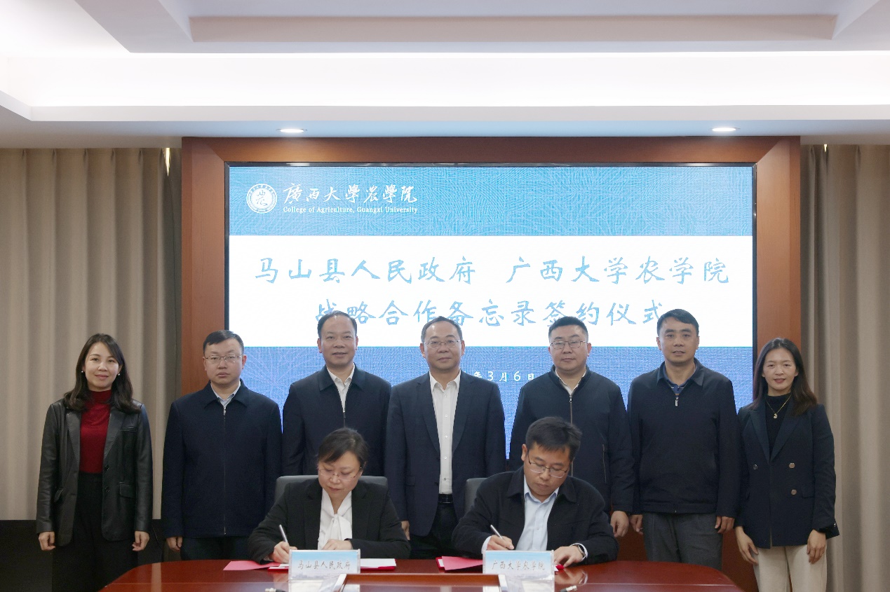 于文进对韦佳县长一行的到来表示欢迎,介绍我校与地方政府、重点企业开展合作和科教融合协同创新情况,指出太阳成集团tyc151cc与马山县优势互补,长期保持良好的合作关系,在产业发展、人才培养、科技服务等方面开展了深入合作,取得良好的成效。种业是农业的“芯片”,是国家战略性、基础性核心产业。马山县是种业大县,有着得天独厚的自然资源优势,发展潜力巨大,希望太阳成集团tyc151cc与马山县通过签署合作备忘录,开展技术、项目、人才等全方位合作共建,推进科技成果在马山县转化,让双方的人才、科技、政策、资源结合起来,助推马山乡村全面振兴,实现社会经济高质量发展,努力把马山建成教学科研示范基地、打造成服务县域经济的典范。