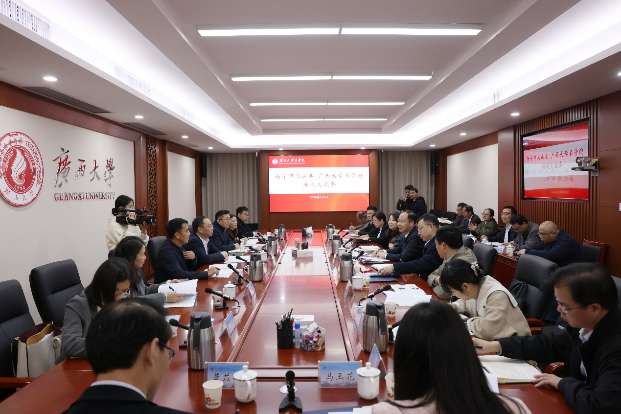 韦佳表示,回到母校,深刻感受到母校的巨大变化,感谢母校对他的关心和对马山的支持。他介绍了马山县基本情况,希望今后能够在农业合作、创新平台、科技研发、实践基地、人才培养、科技培训、支部共建等7个领域开展更深入的合作。