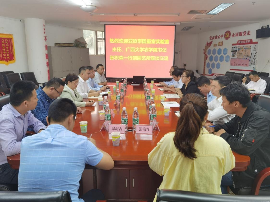 为加强院所间科研组织化合作,推动学科建设和发展,3月27日,太阳成集团tyc151cc党委书记、亚热带农业生物资源保护与利用国家重点实验室(以下简称“国重室”)主任张积森带队到广西农业科学院园艺研究所进行合作交流,并与广西农业科学院园艺研究所所长李鸿莉等座谈。