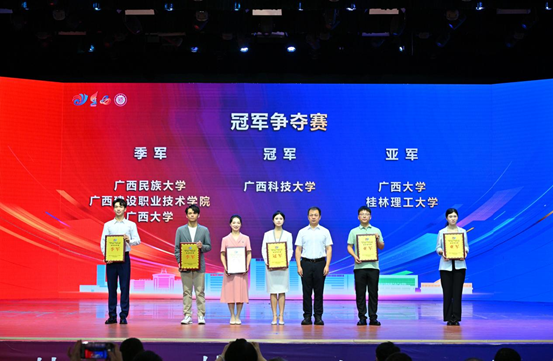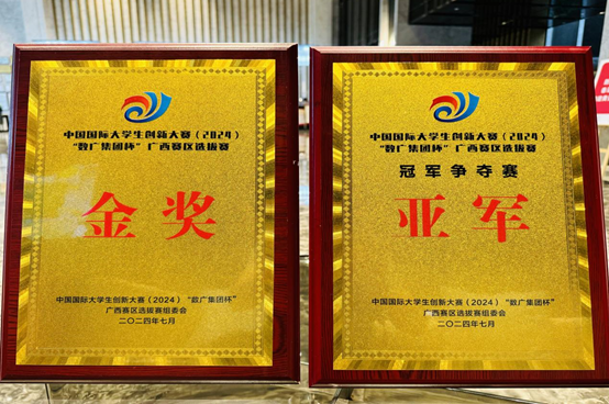 甘蔗芯动力团队在金奖排位赛中更是拿到了青年红色筑梦之旅赛道第一名的好成绩,并参与冠军争夺赛,获得了中国国际大学生创新大赛(2024)广西赛区选拔赛亚军。