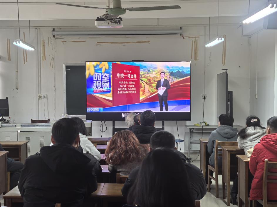 随后,贾海锋副主任和阳燕娟副主任分别就科研和教学工作进行了安排。何新华教授对青年教师在教学和科研方面提出建议。何教授强调青年教师要多去听课,学习上课方法与技巧,并积极参与教学改革,要利用最新的理论知识和AI技术,提高教学水平。在科研方面,他鼓励青年教师要加强与原导师团队的科研合作,并积极参与产业调研,把握好课题方向,要亲自下实验室带着研究生一起做实验,发挥好党员的先锋模范作用,勇于开拓进取。最后,全体教职工集中收看学习中央电视台的“中央一号文件”解读视频。