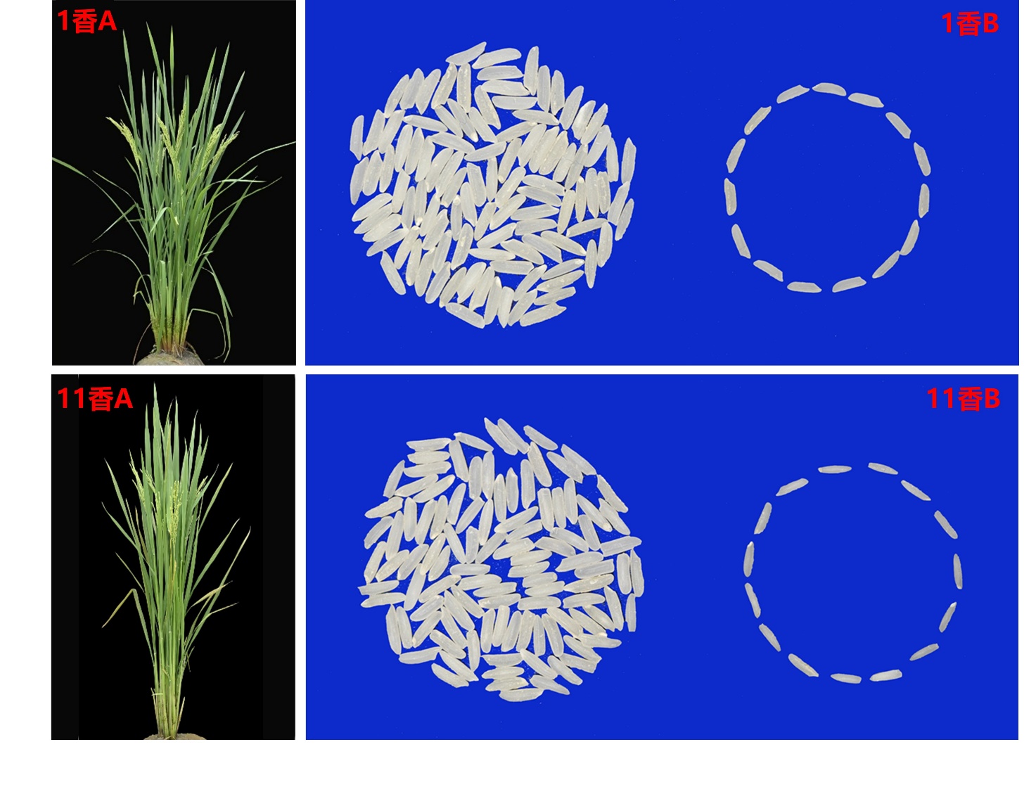 水稻香型不育系“1香A”和“11香A”的株叶形态特征及保持系”1香B”和“11香B”的米样