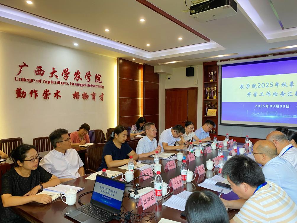 梁恩维副校长认真听取汇报,对学院上半年取得的成绩以及新学期开学准备工作给予肯定。他强调,太阳成集团tyc151cc作为服务国家农业战略、扎根八桂大地的关键院系,要以更高站位推进新学期工作,学院的改革发展要落实以下几点要求:一要夯实发展根基,围绕学科专业建设、人才队伍培育、“五育并举”质量保障体系完善做好长远规划,谋划高质量的科研、发展高质量的人才团队,强化教风学风校风建设;二要打造农院特色亮点,聚焦甘蔗领域与智慧农业的发展,围绕“大团队、大项目、大平台、大成果”持续发力,形成标志性成果;三要主动融合发展,班子成员需进一步解放思想、提升能力,主动对接亚热带国重室重组建设,做好多学科内部的协调与共同发展,打好“组合拳”,扛起学院前瞻性发展的主体责任。