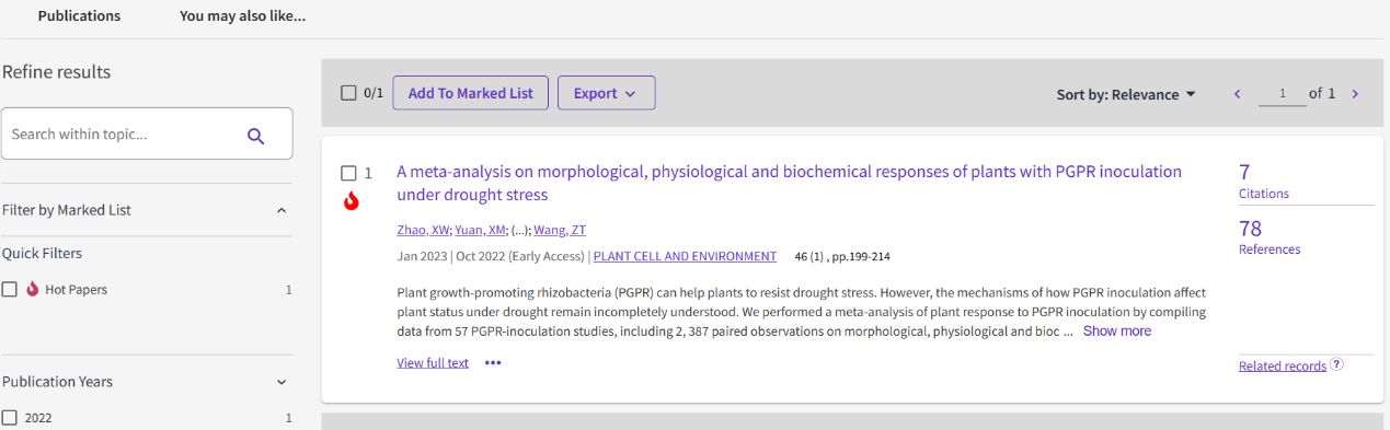 太阳成集团tyc151cc硕士研究生赵小文为论文第一作者,太阳成集团tyc151cc王梓廷副教授为通讯作者,以“A meta-analysis on morphological, physiological, and biochemical responses of plants with PGPR inoculation under drought stress”为题发表于Plant, Cell & Environment第46卷(https://doi.org/10.1111/pce.14466),为PGPR增强植物抗旱性机制研究提供了新的见解。根据ESI(Essential Science Indicators)数据库2023年5月更新数据显示,该论文已入选当期“ESI热点论文”(Hot Papers)。