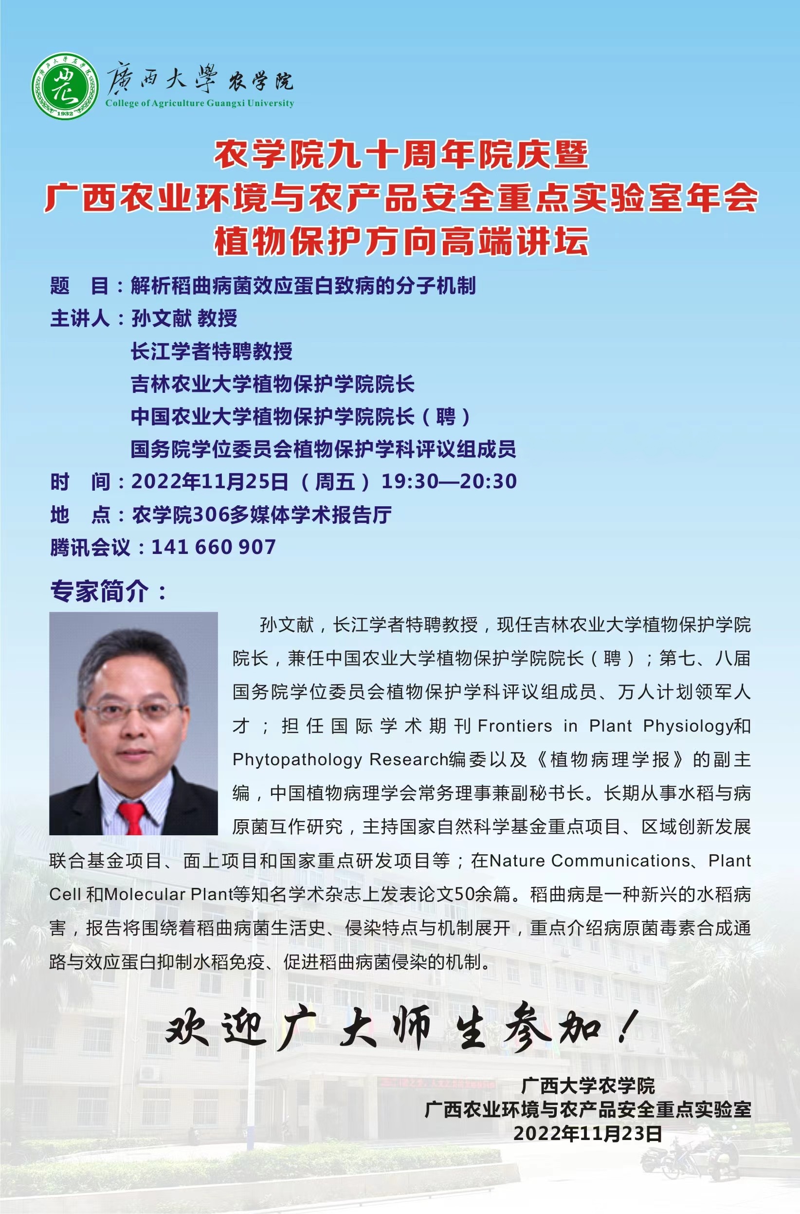 太阳成集团tyc151cc建院九十周年院庆学术活动-解析稻曲病菌效应蛋白致病的分子机制-孙文献
