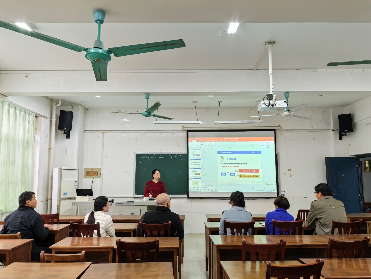 本次活动由系主任黄智刚老师主持。首先,孙婷婷老师以备战课程主讲资格认证为契机,示范讲授了本科《土壤肥料学》土壤有机质部分的章节。随后的教学研讨环节中,韦燕燕副院长,从自身主讲该课程的一线教学经验出发,分析了本章节教学要求、知识要点和授课要领。黄智刚老师以字体选用、版面配色、动画应用等为例,传授了如何通过设计精美课件来激发学生学习兴趣的经验。唐新莲老师以多年从教和从事教学督导工作的经验,指出了青年教师讲课语速过快、内容详略安排不当、重点不突出等通病,并提出相应的克服办法。王学礼老师从语调语气、肢体语言、互动设置等方面着手,现场传授了如何让课堂生动起来的教学技巧。