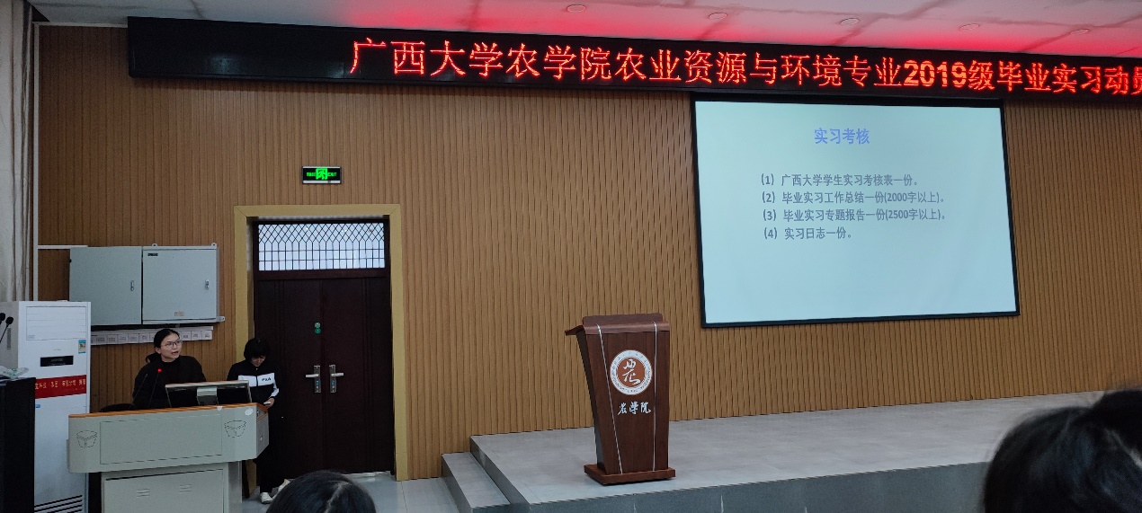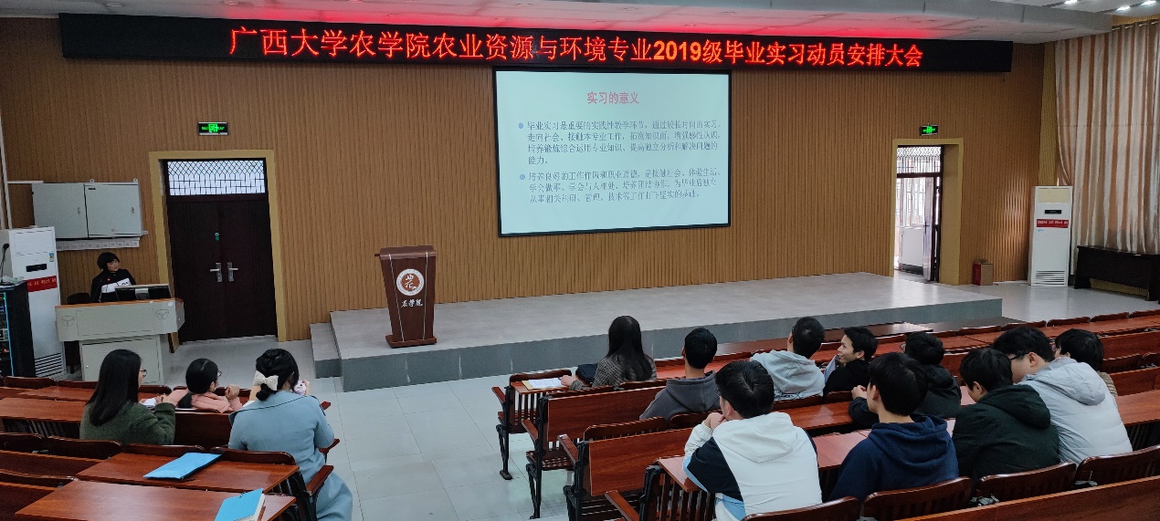 实习是高校人才培养的关键环节,2月16日下午,太阳成集团tyc151cc农业资源与环境专业组织召开了2019级本科生毕业实习动员大会。会议由专业实习负责人唐新莲老师主持,太阳成集团tyc151cc主管教学副院长韦燕燕老师、各实习指导老师和所有参加实习的学生出席了本次大会。