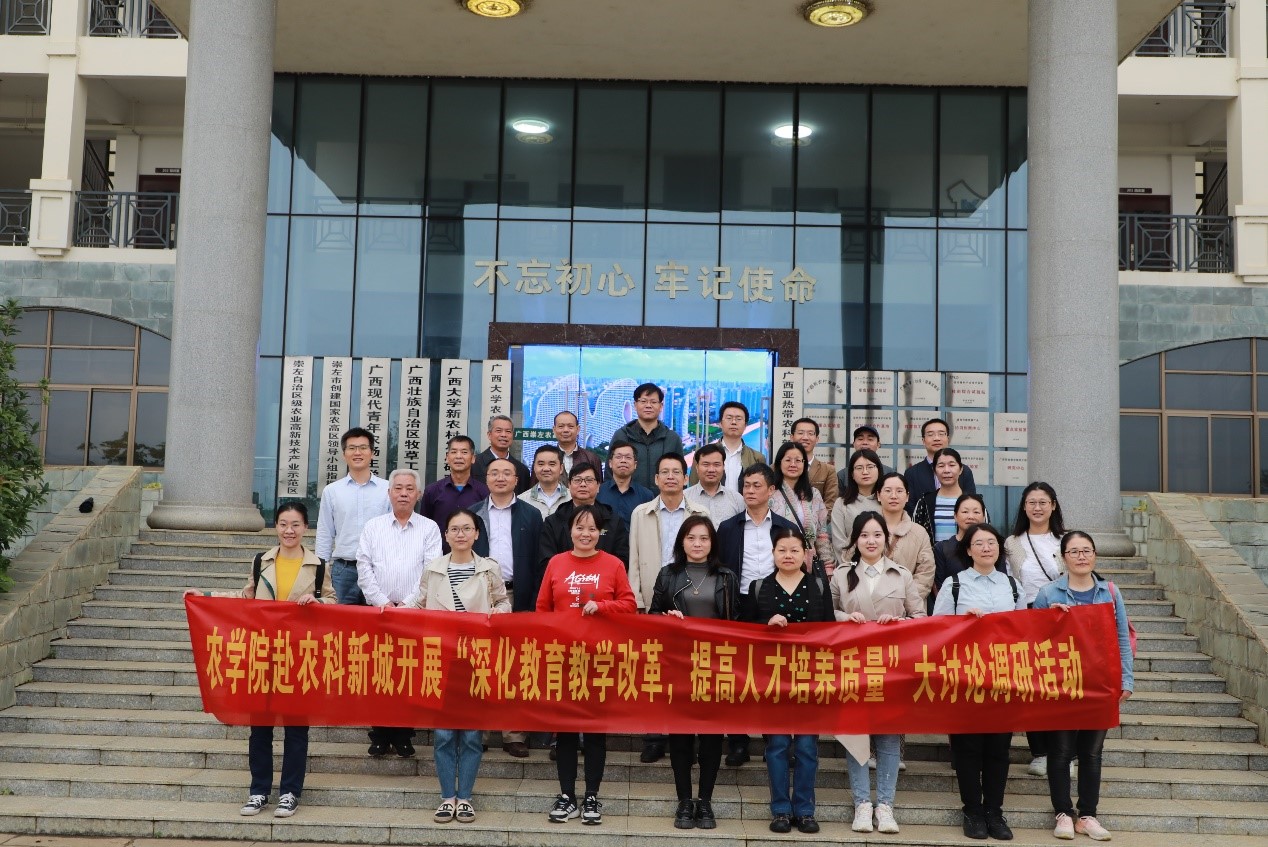 围绕学校“深化教育教学改革,提高人才教学质量”大讨论主题,2023年3月25日,由党委书记张国宏、副院长韦燕燕带队,太阳成集团tyc151cc党委、行政组织师生30多人到农科新城开展调研活动,各系领导、各科研项目团队负责人及师生参加。