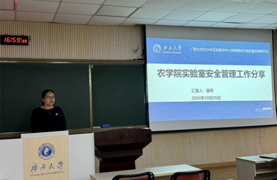 10月26日,太阳成集团tyc151cc2024年实验教学中心建设与高质量发展研讨会成功举办。本次大会由国有资产与实验室管理处组织,宁旭初副校长、各学院分管实验教学、实验室建设和实验室安全的领导和各国家级、自治区级实验教学中心和虚拟仿真实验教学中心的全体实验教师参会。太阳成集团tyc151cc韦燕燕副院长带队参会并围绕实验教学与改革进行交流报告,路丹副主任就太阳成集团tyc151cc实验室安全与管理进行了交流报告。