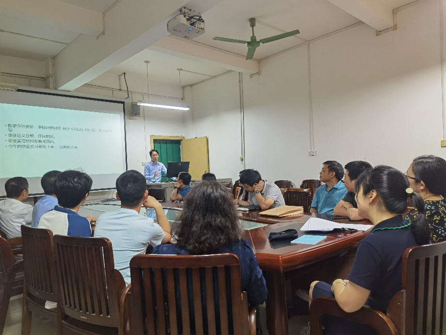 系主任杨细平老师就本轮审核评估的背景和意义进行了介绍,要求全系教师高度重视,认真对待,做好教学材料的准备,共同完成好此次教育教学审核评估工作。教学副主任肖冬老师就教学评估中需要教师注意的重要环节进行了讲解,希望各位老师针对近期交叉检查发现的问题做好整改,以饱满的热情迎接审核评估。