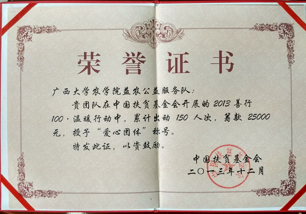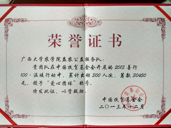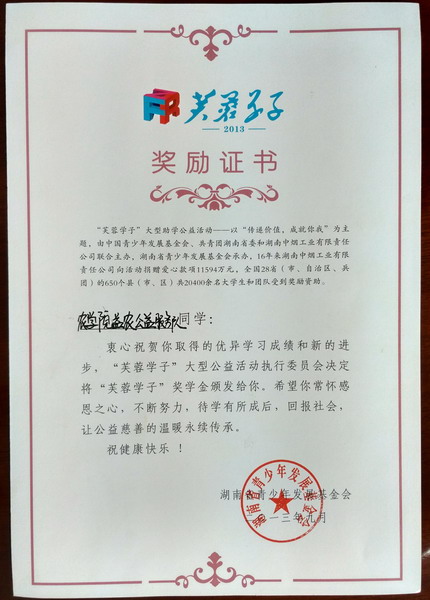 首届中国青年志愿者服务项目大赛银奖2014.12