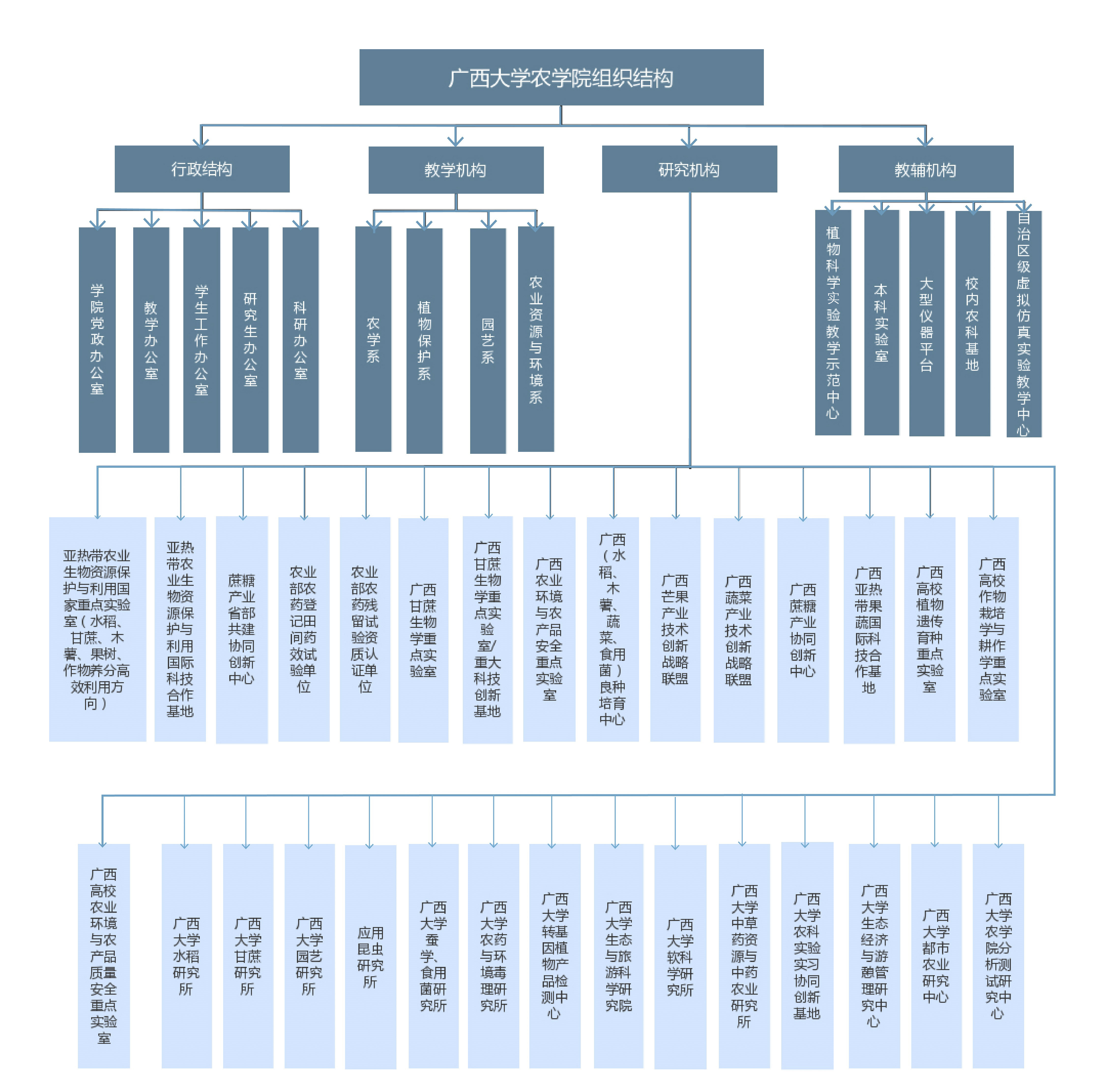 亚热带农业生物资源保护与利用国家重点实验室(水稻、甘蔗、木薯、果树、作物养分高效利用方向)、亚热带农业生物资源保护与利用国际科技合作基地、蔗糖产业省部共建协同创新中心、农业农村部农药登记田间药效试验单位、农业农村部农药残留试验资质认证单位;广西亚热带果蔬国际科技合作基地、广西甘蔗生物学重点实验室/重大科技创新基地、广西农业环境与农产品安全重点实验室、广西(水稻、木薯、蔬菜、食用菌)良种培育中心、广西芒果产业技术创新战略联盟、广西蔬菜产业技术创新战略联盟、广西蔗糖产业协同创新中心、广西甘蔗生物学重点实验室;广西高校植物遗传育种重点实验室、广西高校作物栽培学与耕作学重点实验室、广西高校农业环境与农产品质量安全重点实验室;太阳成集团tyc151cc水稻研究所、太阳成集团tyc151cc甘蔗研究所、太阳成集团tyc151cc园艺研究所、应用昆虫研究所、太阳成集团tyc151cc蚕学研究所、太阳成集团tyc151cc农药与环境毒理研究所、太阳成集团tyc151cc食用菌研究所。太阳成集团tyc151cc生态与旅游科学研究院、太阳成集团tyc151cc软科学研究所、太阳成集团tyc151cc中草药资源与中药农业研究所、太阳成集团tyc151cc农科实验实习协同创新基地、太阳成集团tyc151cc生态经济与游憩管理研究中心、太阳成集团tyc151cc都市农业研究中心、太阳成集团tyc151cc分析测试研究中心。